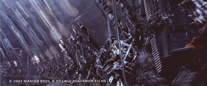 Well, my first majorly complex “robot” rig was definitely the APU for the Matrix sequels at?ESC Entertainment. ESC had just opened up to do the Matrix sequels and already had a rigging team for their digital humans (Neo, Agent Smith etc). They were looking to expand the rigging department to handle the additional character rigging needs of the sequels, namely,?the Sentinels, APUs and Digger mechanical robots. They hired 3 riggers and assigned each?of those characters to each of us. It so happened I was assigned the APU. I remember opening the Maya file of the model the first time and my jaw just dropped, there must have been thousands of model parts, springs, nuts, bolts, cables etc. I had no idea how it was supposed to all work! I just dove in and did a lot of experimenting while working with modelers and animators along the way. It was all about trying something out, showing it and getting feedback. With that much geometry and the model changing all the time, I had to be organized and create a lot of utility scripts to help along the way.