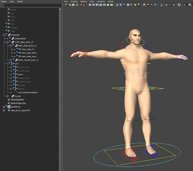 The supplemental joints here are comprised of joints used for IK hands and feet as well as joints only used when the character is in First Person/Aim Down Sights (ADS) mode.