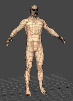 We started with a fairly standard male mesh until we fully determined how we wanted to approach the semi-stylistic look we wanted the characters to have. Here you can see some stages the proportions of the character went through before we came to our current version. The overall height and proportions didn’t have to change drastically from our initial construction. However, some aspects changed enough for us to have to modify the skeleton and in turn adjust and re-export animations.You can also see some of the topology was reduced to minimize the work that it would take to project onto future clothing assets and to lower the polycount overall.