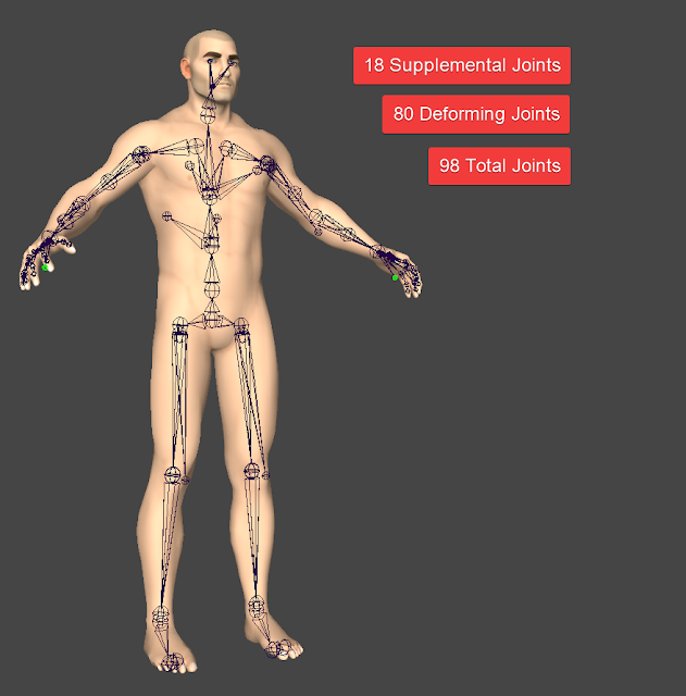 The supplemental joints here are comprised of joints used for IK hands and feet as well as joints only used when the character is in First Person/Aim Down Sights (ADS) mode.