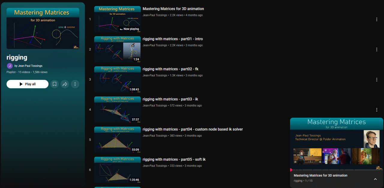 Cult of Rig (Rigging Dojo Intro) One of the most advanced deep dives into Maya rigging from bottom to top, Raf has created a series (we are sponsors) that takes a deep look at rigging in Maya beyond any rigging examples you will find elsewhere. Raf takes a rigging by first principles approach to deconstruct everything you think you know about rigging and break it into the smallest parts possible, before putting it all back together. We have a series of blog posts as a starting point for you to help ease into the series by trying to break down or relate what he is talking about to what you have learned already or you can go directly to his page and start learning. You could simply start with this and go through everything and if you understood it it would be great but we still find value in the other learning resources because you need to know how to deal with more common rigging you will encounter while also reaching to grow beyond those limitations.